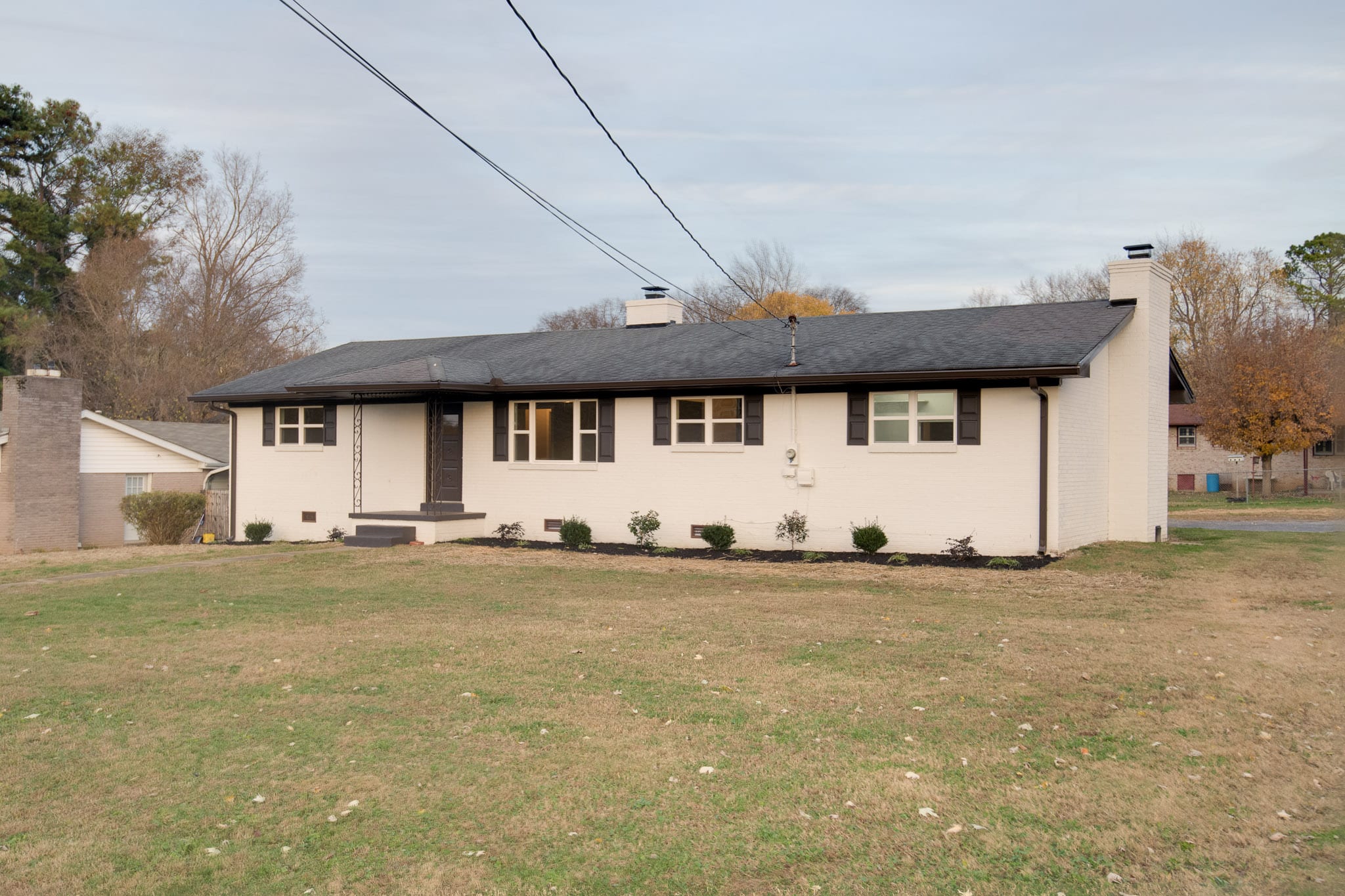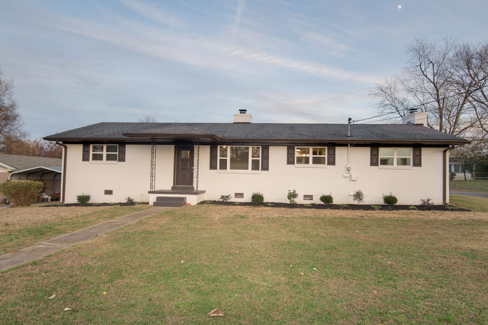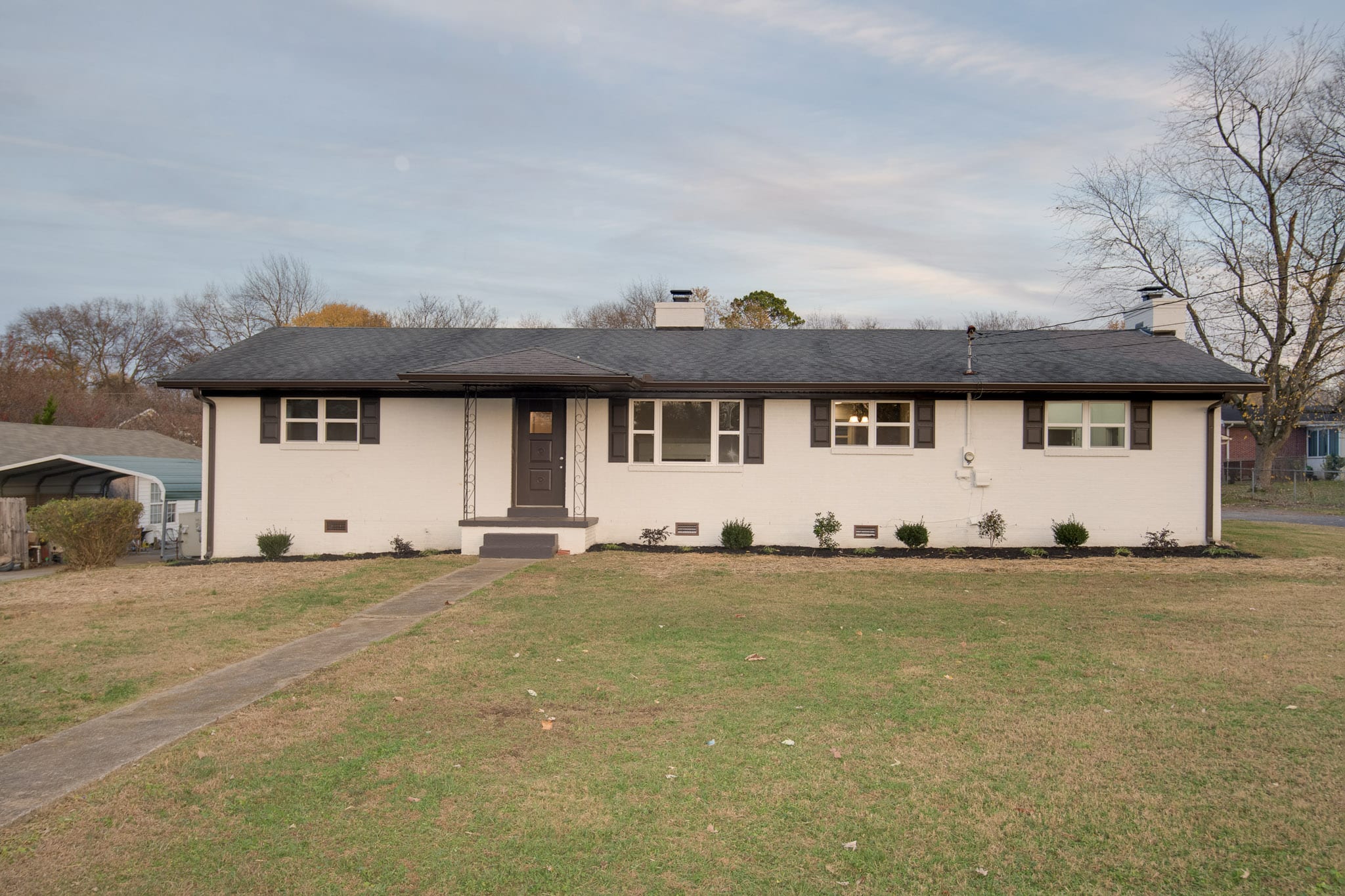 Nicely renovated 3 bedroom 1 and 1/2 half brick home featuring open and airy living room with wood burning fireplace, separate den with wood burning fireplace, all new kitchen cabinets, all new stainless appliances, new plumbing lines, new landscaping, 2 car attached carport with storage room w/roll up door