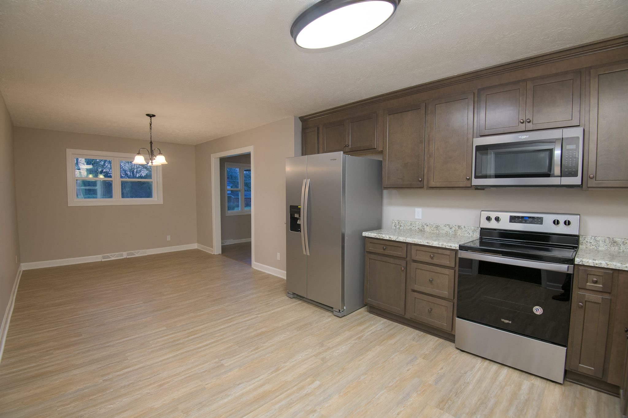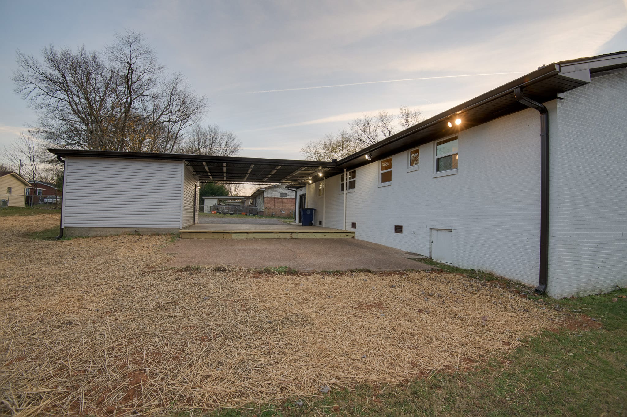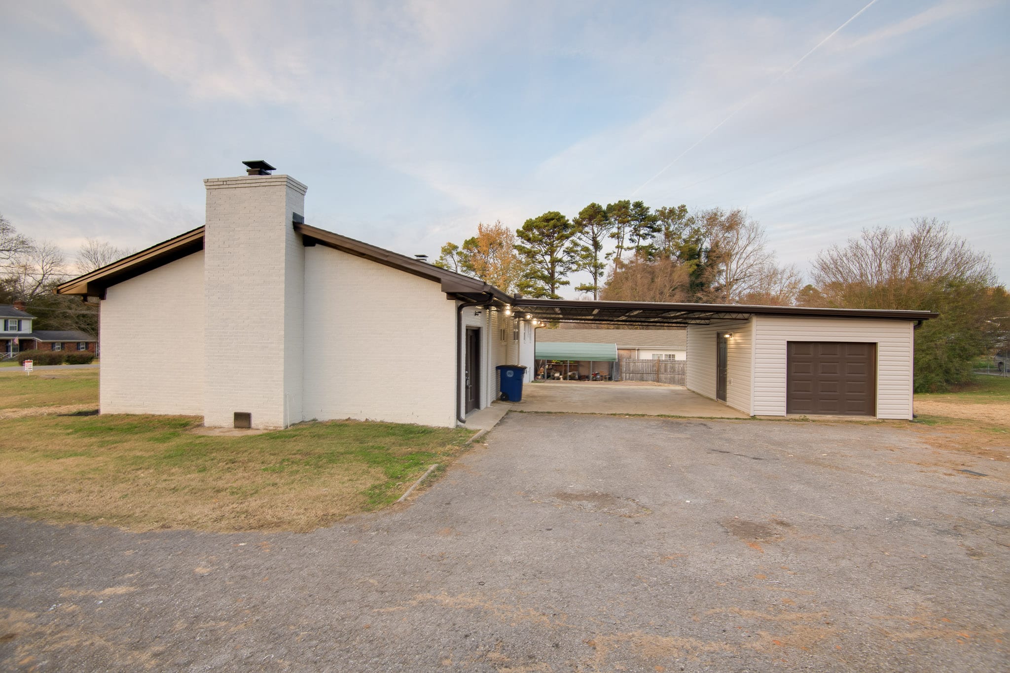 Nicely renovated 3 bedroom 1 and 1/2 half brick home featuring open and airy living room with wood burning fireplace, separate den with wood burning fireplace, all new kitchen cabinets, all new stainless appliances, new plumbing lines, new landscaping, 2 car attached carport with storage room w/roll up door
