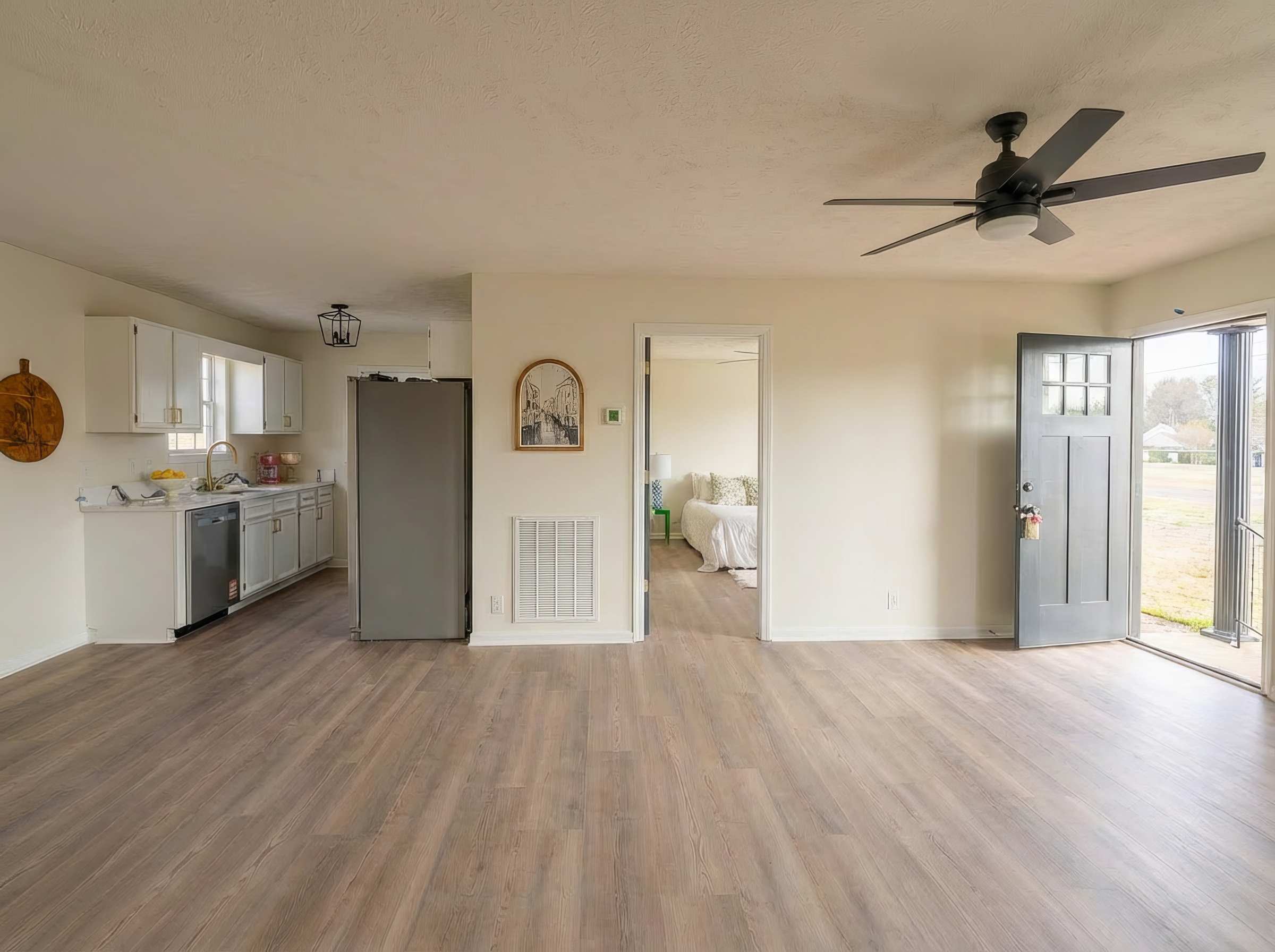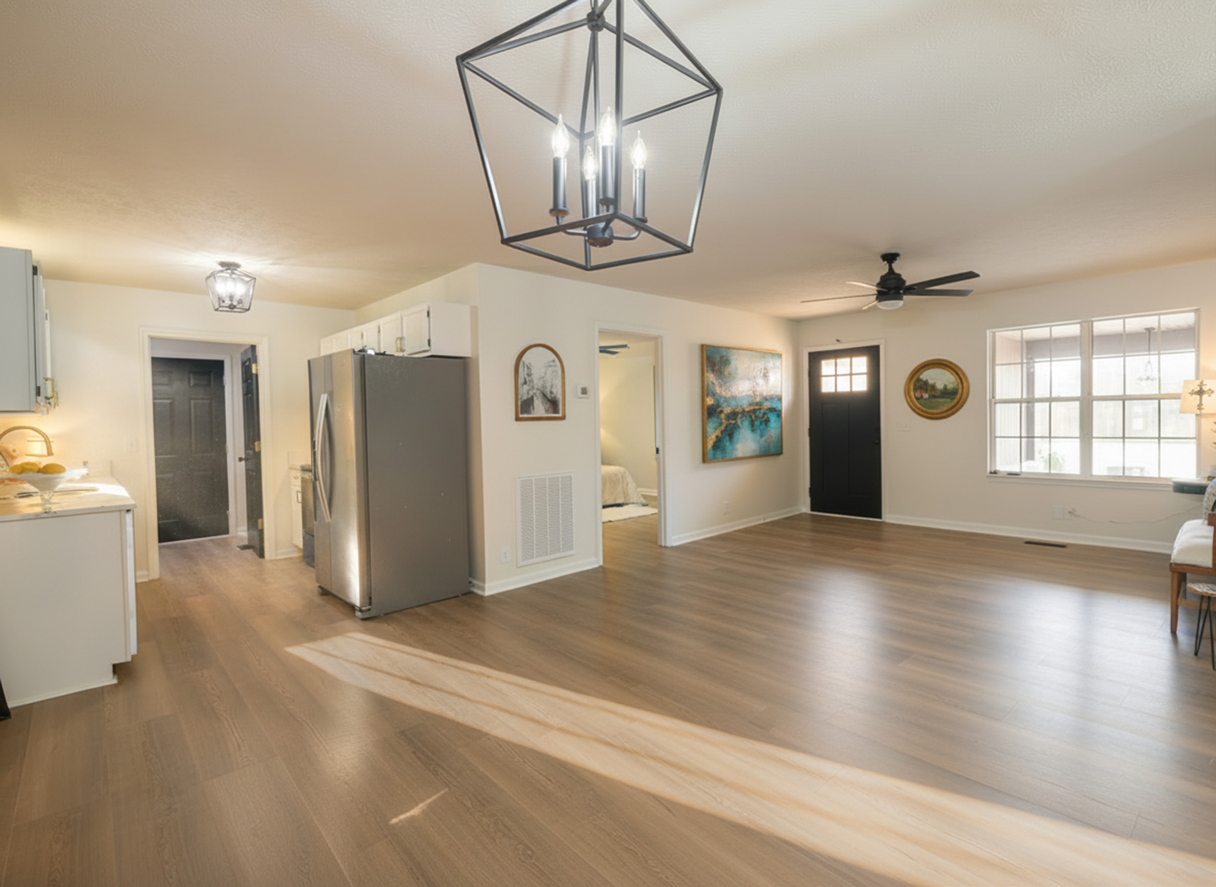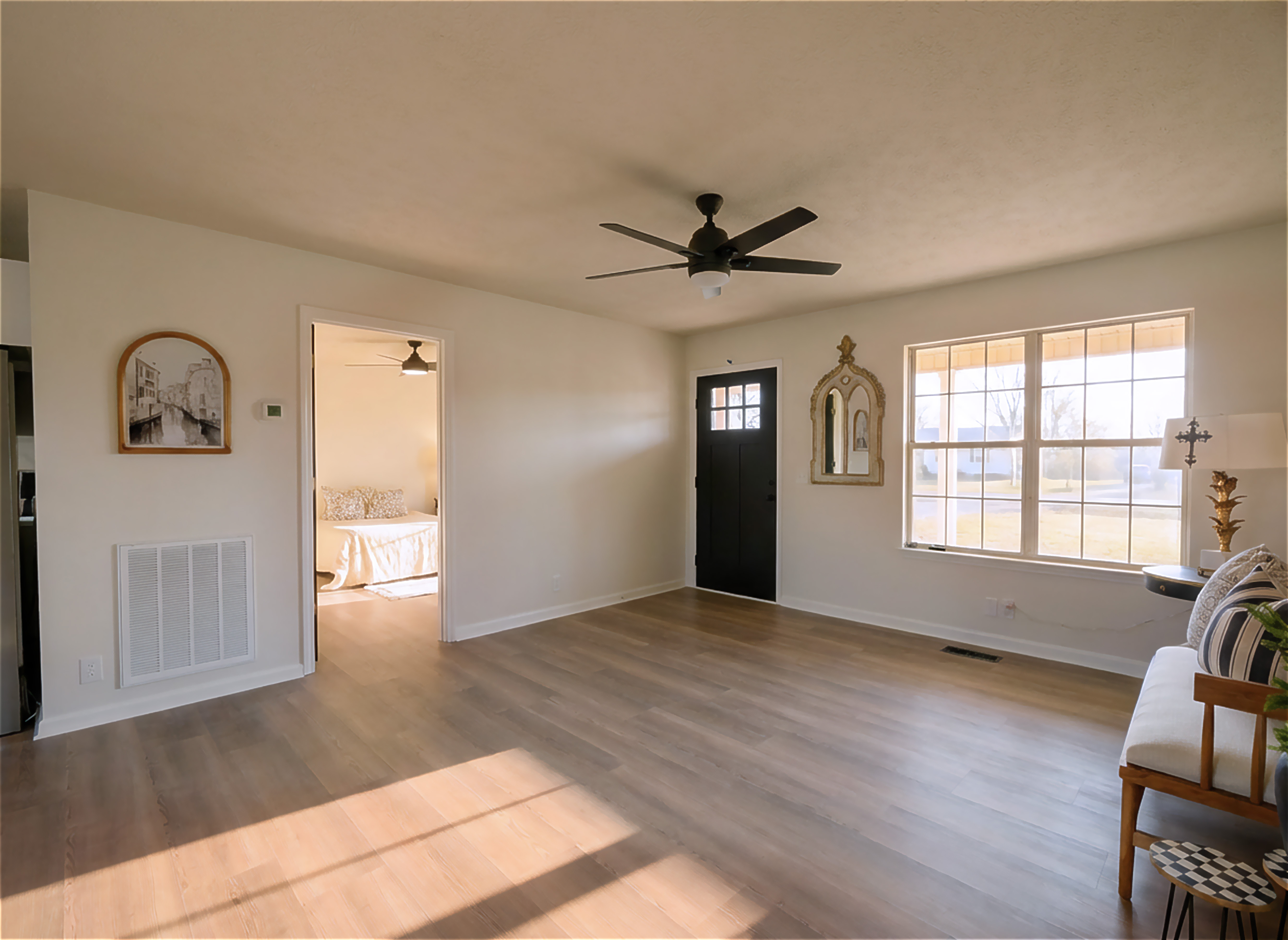 Beautifully renovated 3-bedroom, 2-bath home featuring modern updates throughout! Enjoy spacious living areas with ceiling fans, tiled floors, and stylish tile showers in both bathrooms with all new fixtures. All new LVP flooring and brand new stainless steel appliances. This home has been meticulously maintained with a new vapor barrier in the crawl space for added peace of mind. Outside, you’ll love the concrete patio—perfect for relaxing or entertaining—and the convenience of a paved circular driveway offering plenty of parking. Move-in ready and full of charm, this home combines comfort, quality, and curb appeal! Recently treated for termites