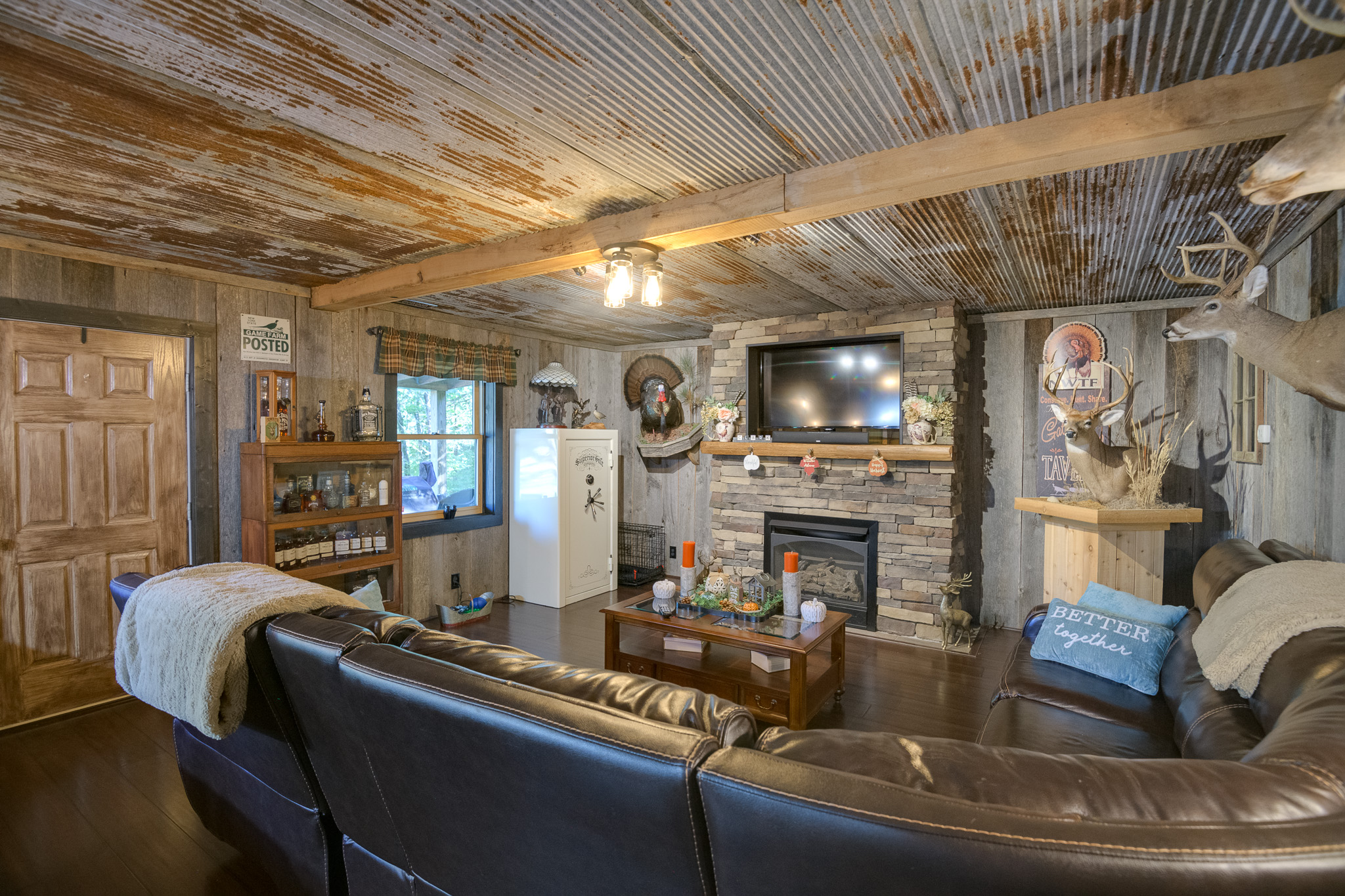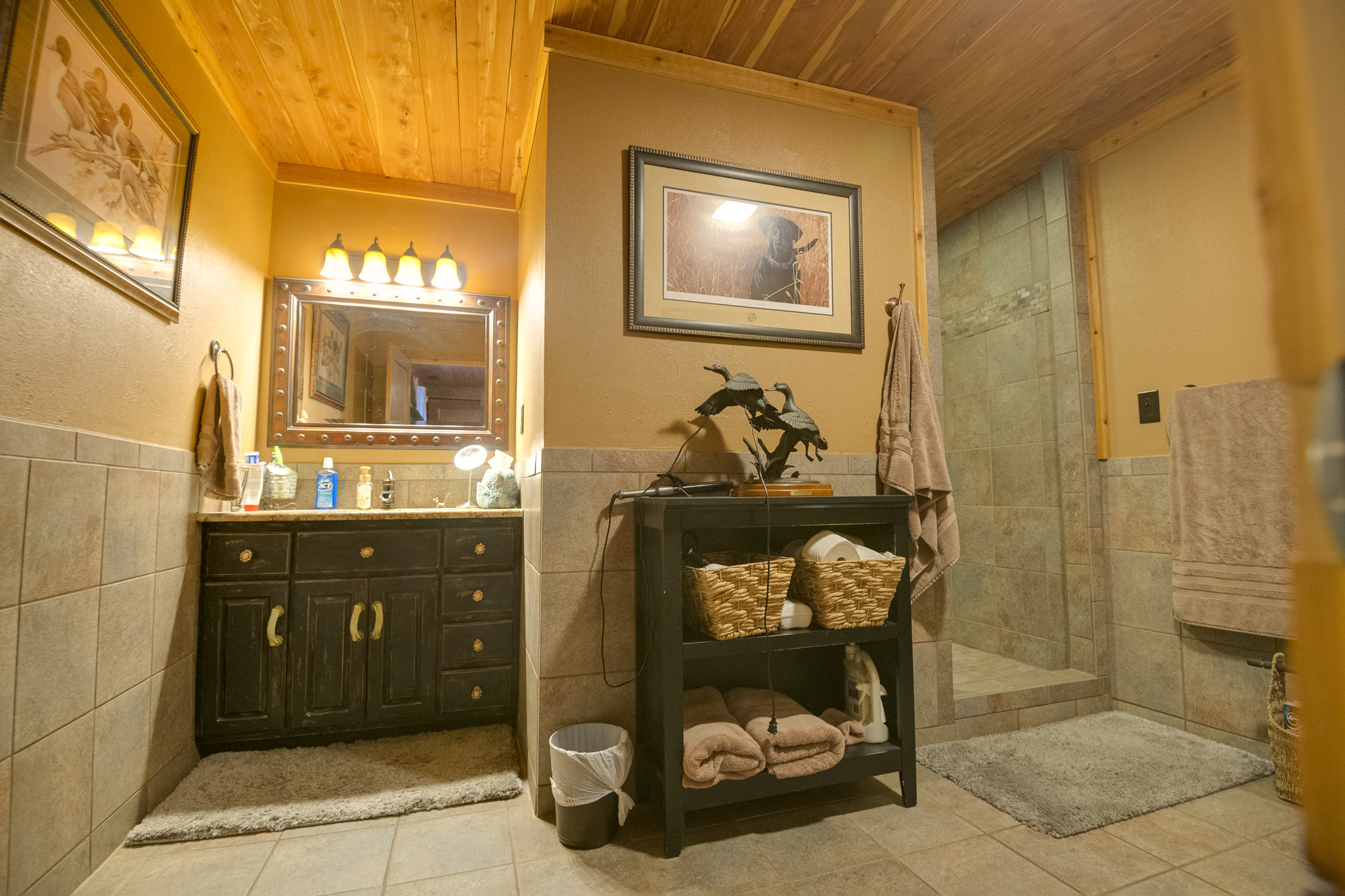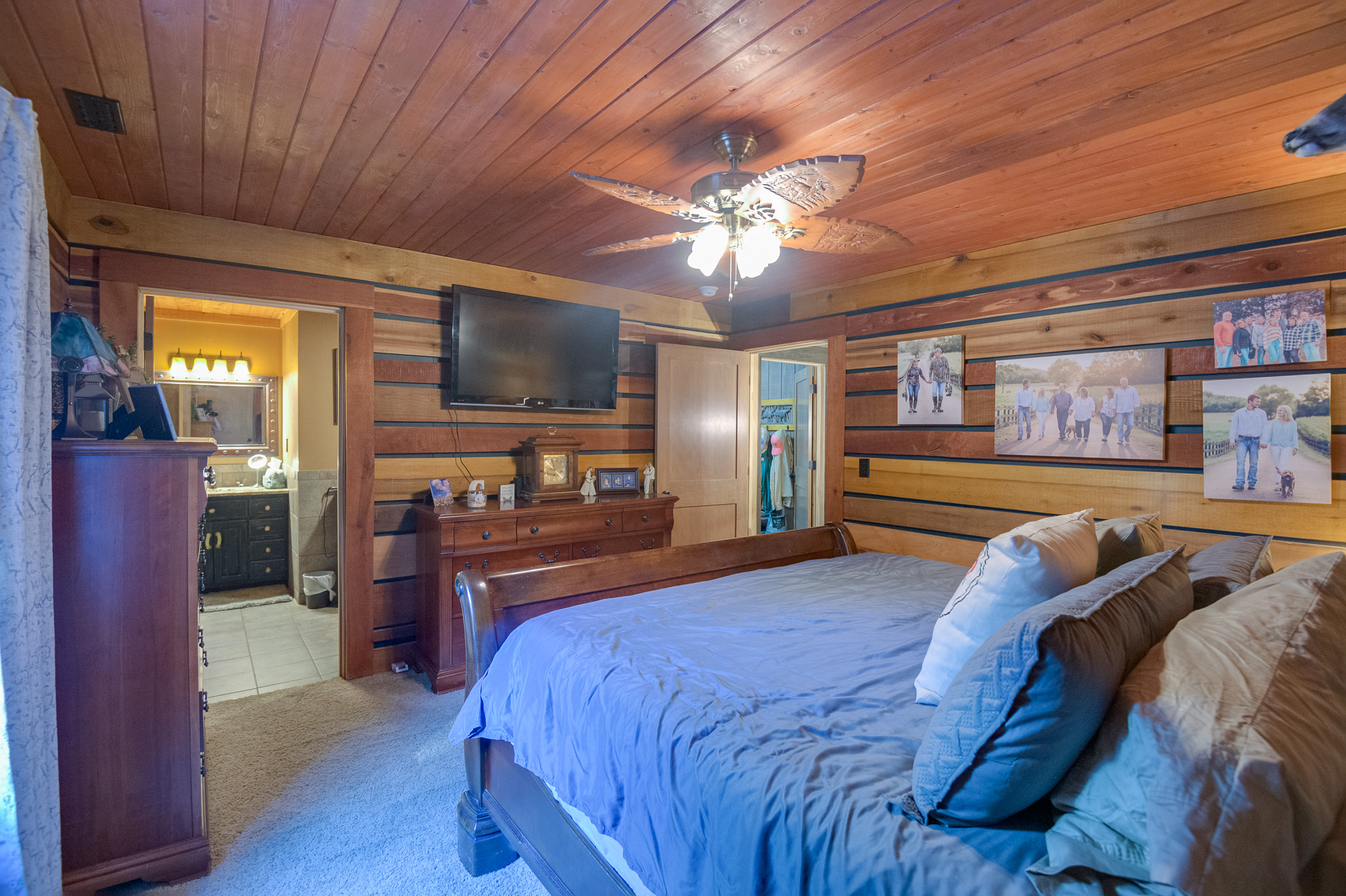 Amazing property featuring gated entrance, long private drive, beautiful home with great rocking chair front porch, stacked stone fireplace with gas logs, huge tiled walk-in shower, 3 car garage/shop attached on 42.52+- wooded acres