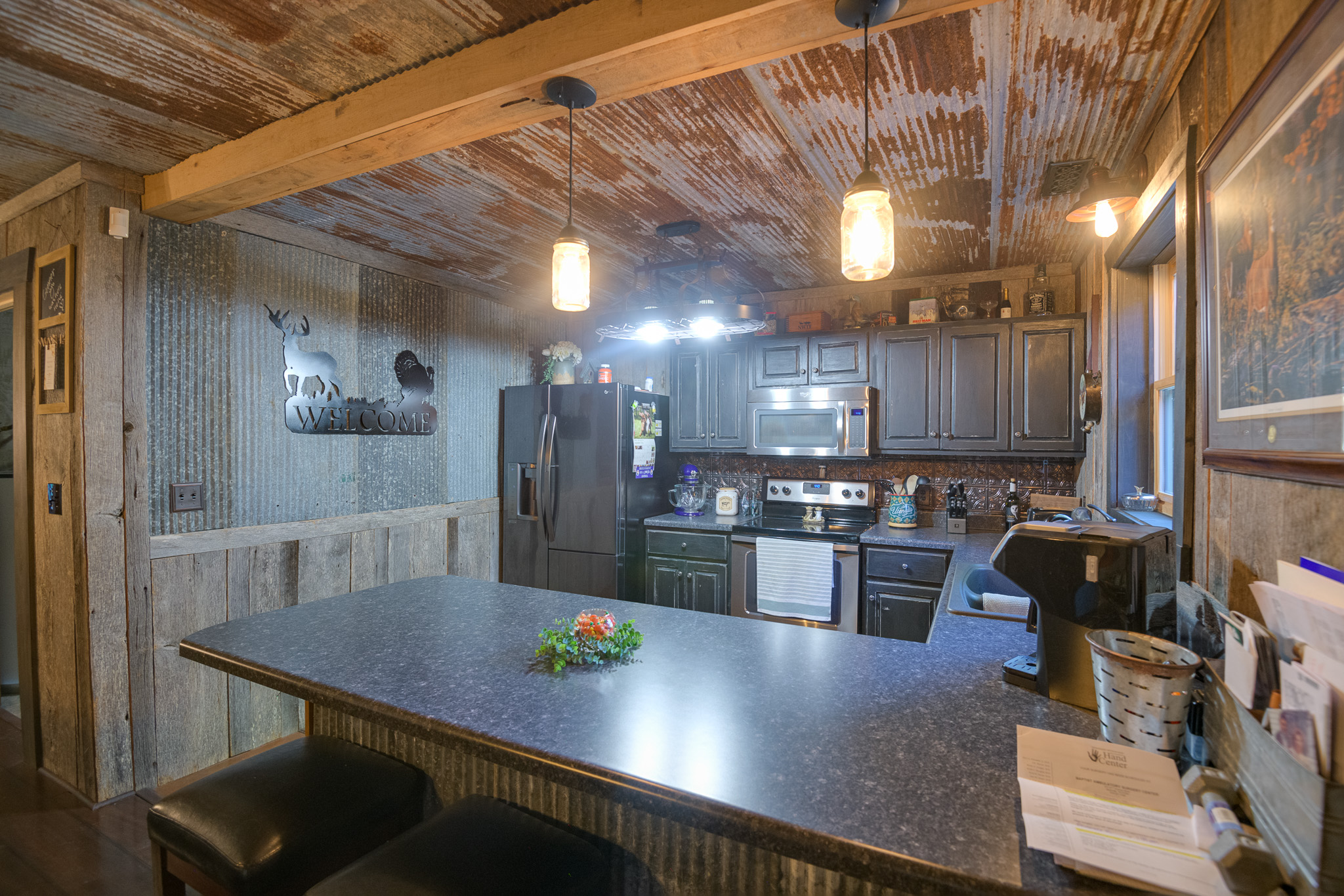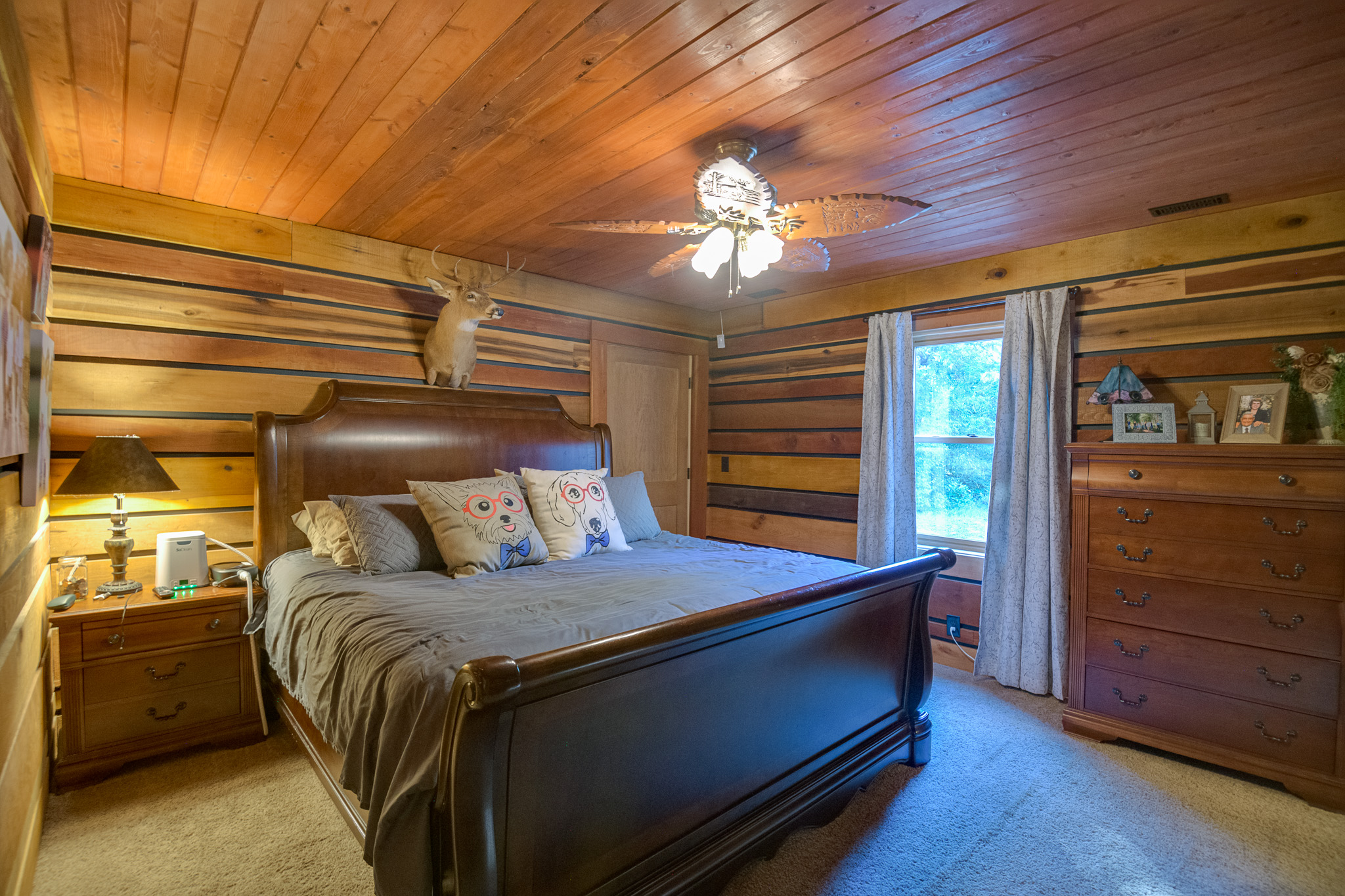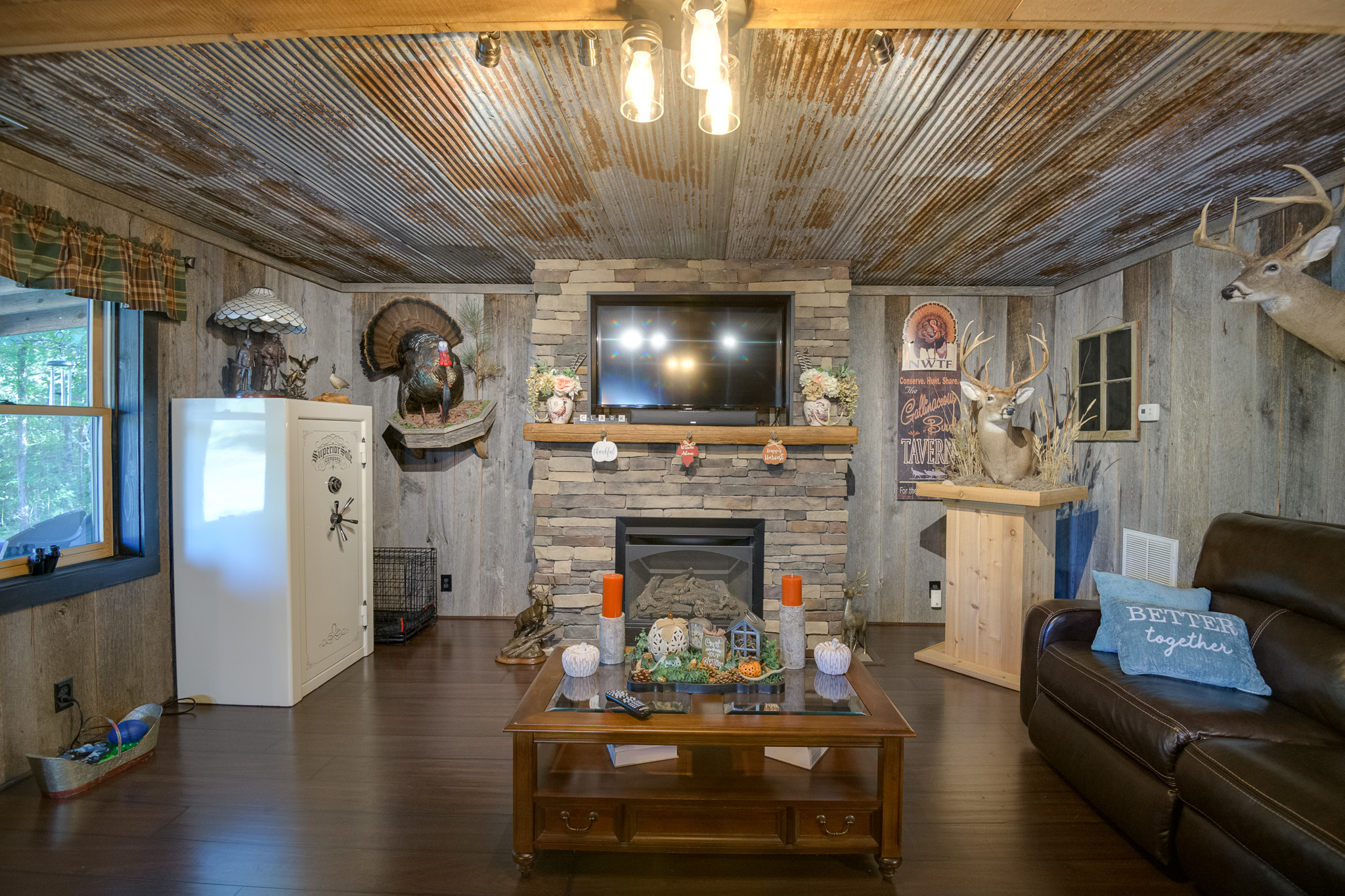 Amazing property featuring gated entrance, long private drive, beautiful home with great rocking chair front porch, stacked stone fireplace with gas logs, huge tiled walk-in shower, 3 car garage/shop attached on 42.52+- wooded acres