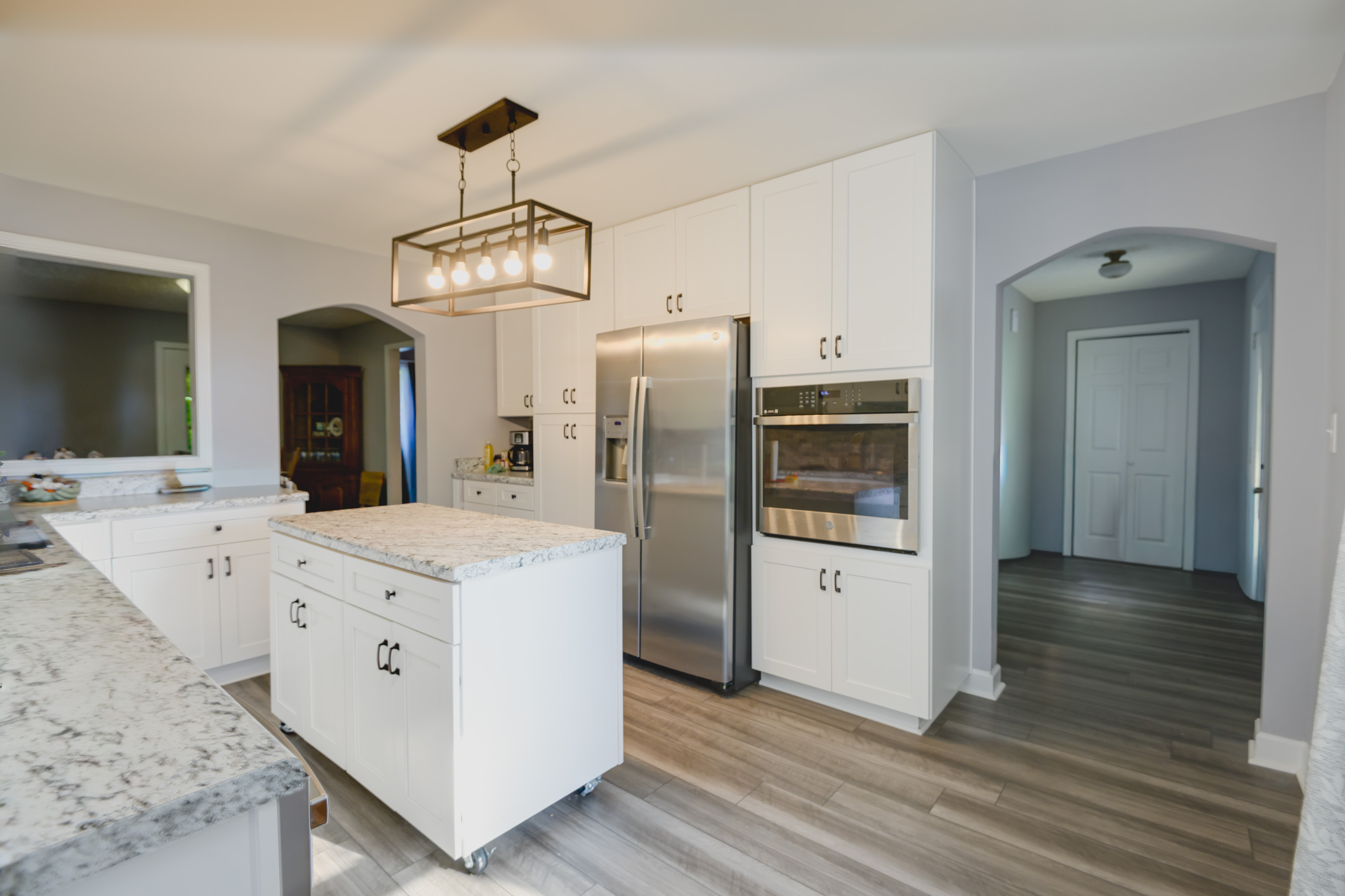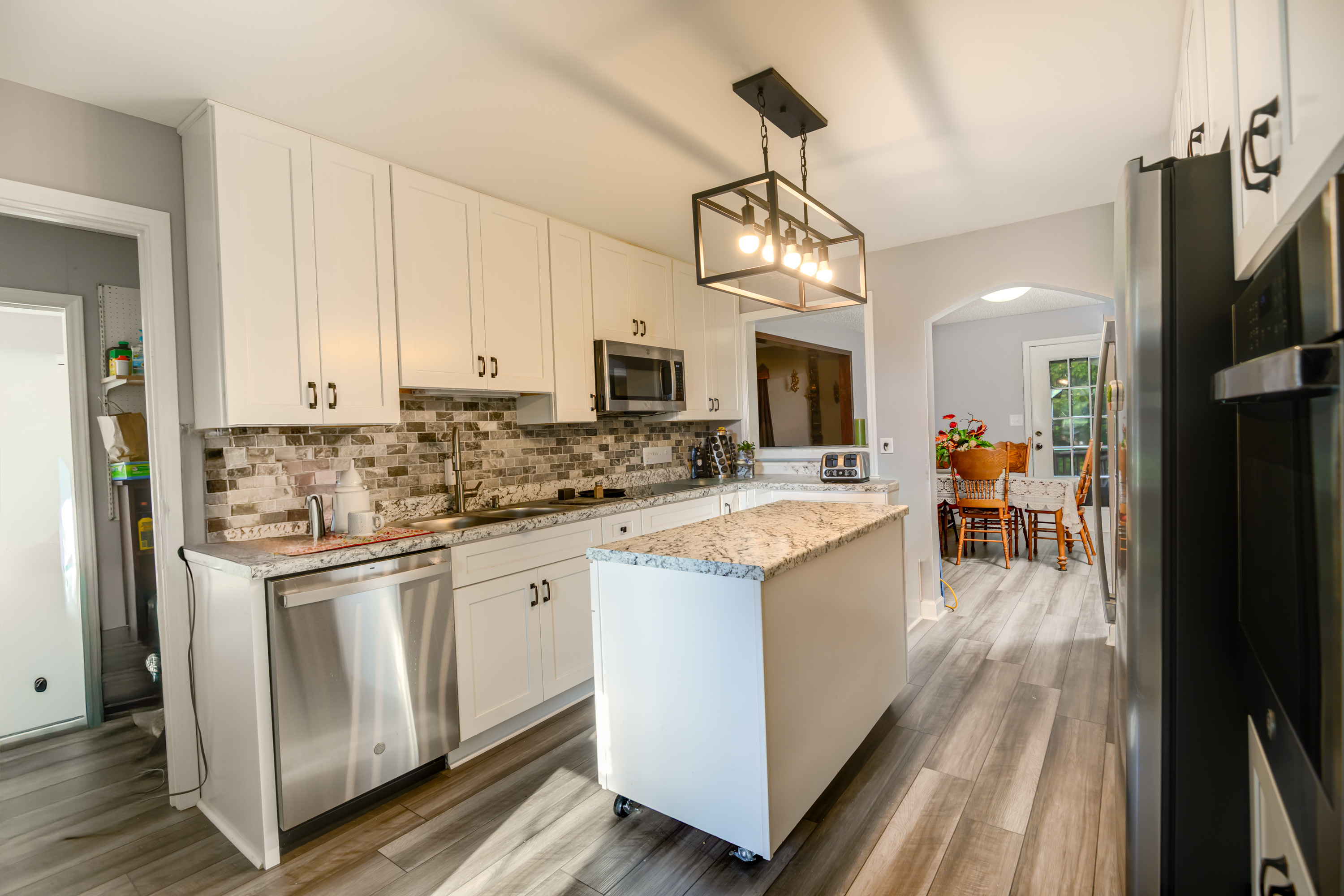 Nestled in a super convenient neighborhood, this charming 4-bedroom, 2-bathroom home offers a perfect blend of comfort and modern updates. The newly remodeled kitchen is a true highlight, boasting a stylish tiled backsplash, convenient pantry, and a central island – ideal for both culinary creations and casual gatherings. Enjoy peace of mind with all vinyl, tilt-out windows, replaced approximately six years ago for enhanced energy efficiency and easy maintenance. Relax and unwind in the inviting family room, complete with a cozy wood-burning fireplace, perfect for chilly evenings. A generous bonus room offers incredible flexibility, serving as an ideal space for entertaining, a dedicated home office, or simply extra living area to suit your needs. Step outside to discover your private, spacious backyard featuring mature trees, offering a serene escape. There is a mini barn provides additional storage space for all your outdoor essentials. This home truly offers a wonderful lifestyle in a prime location. Don’t miss the opportunity to make it yours! Schedule your private showing today.